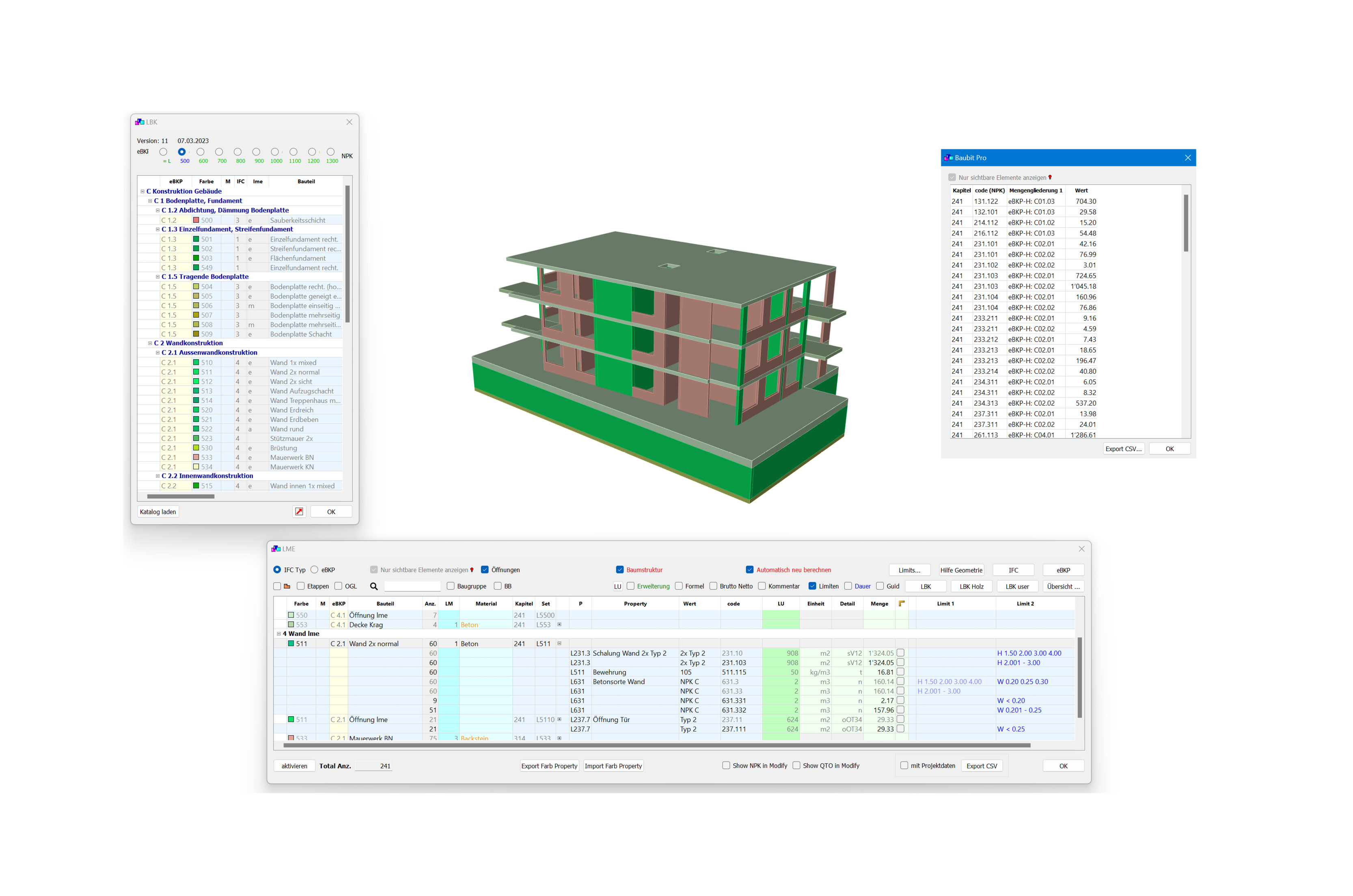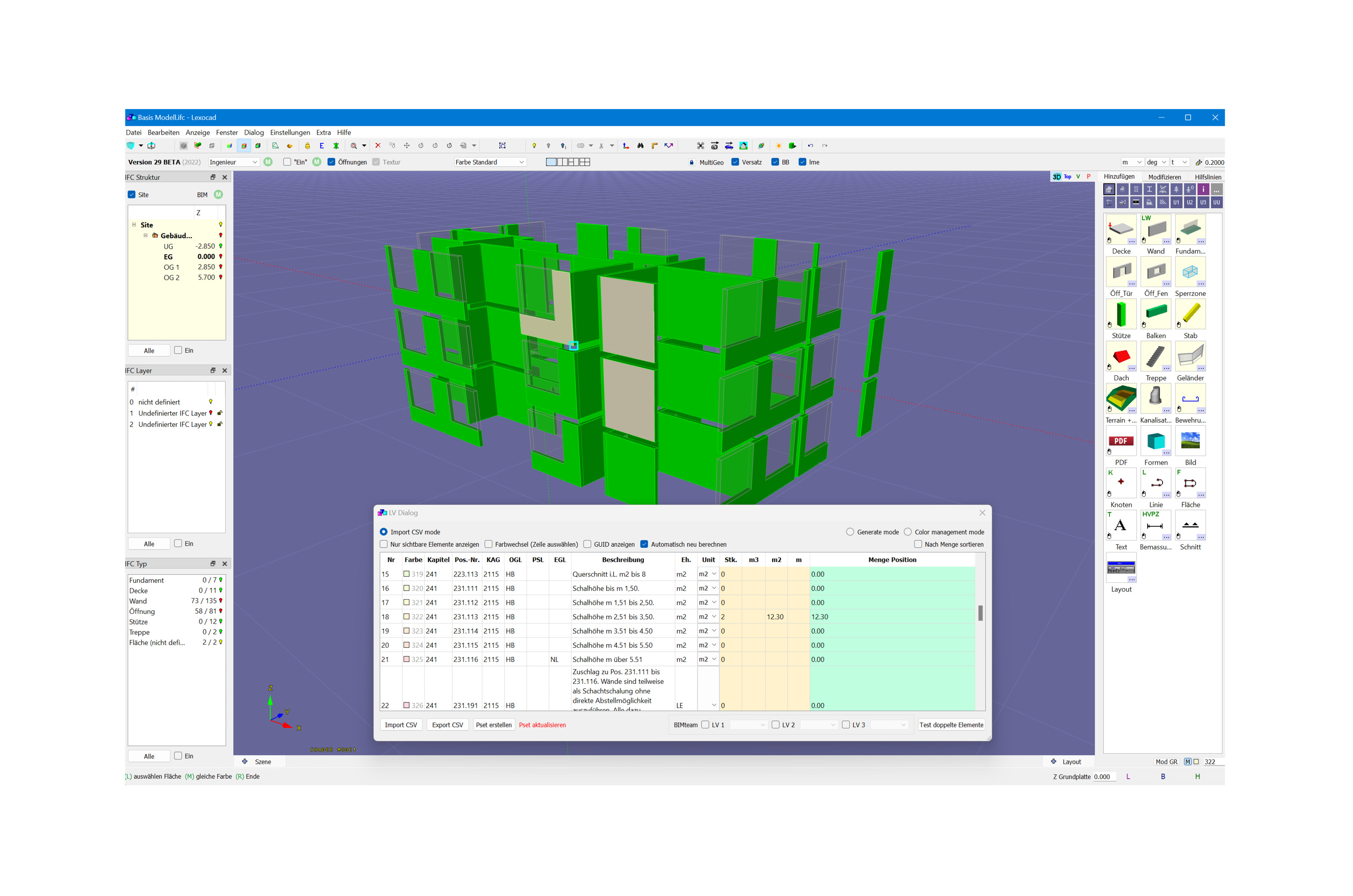 With the customizable Lexocad Parts Catalog (LBK), quantities can be determined automatically, e.g. to create a bill of quantities according to NPK. You can set up the Lexocad parts catalog in such a way that the quantities are determined automatically according to your needs.