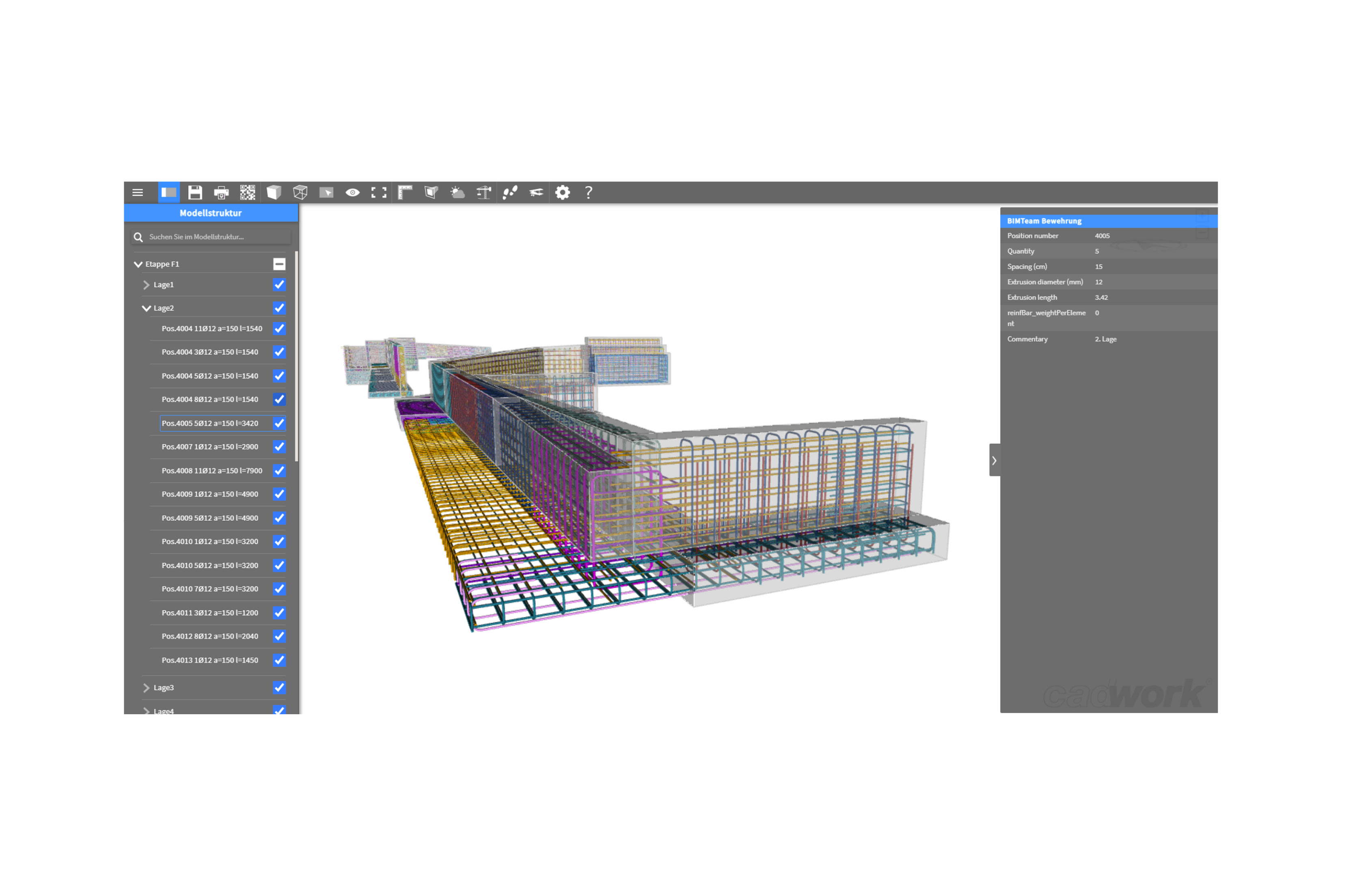 Find the relevant elements for your work step at the click of a button and quickly get an overview of the conditions of the structure. For example, visualize the elements of a floor, a specific formwork type or all elements of the same concrete type.