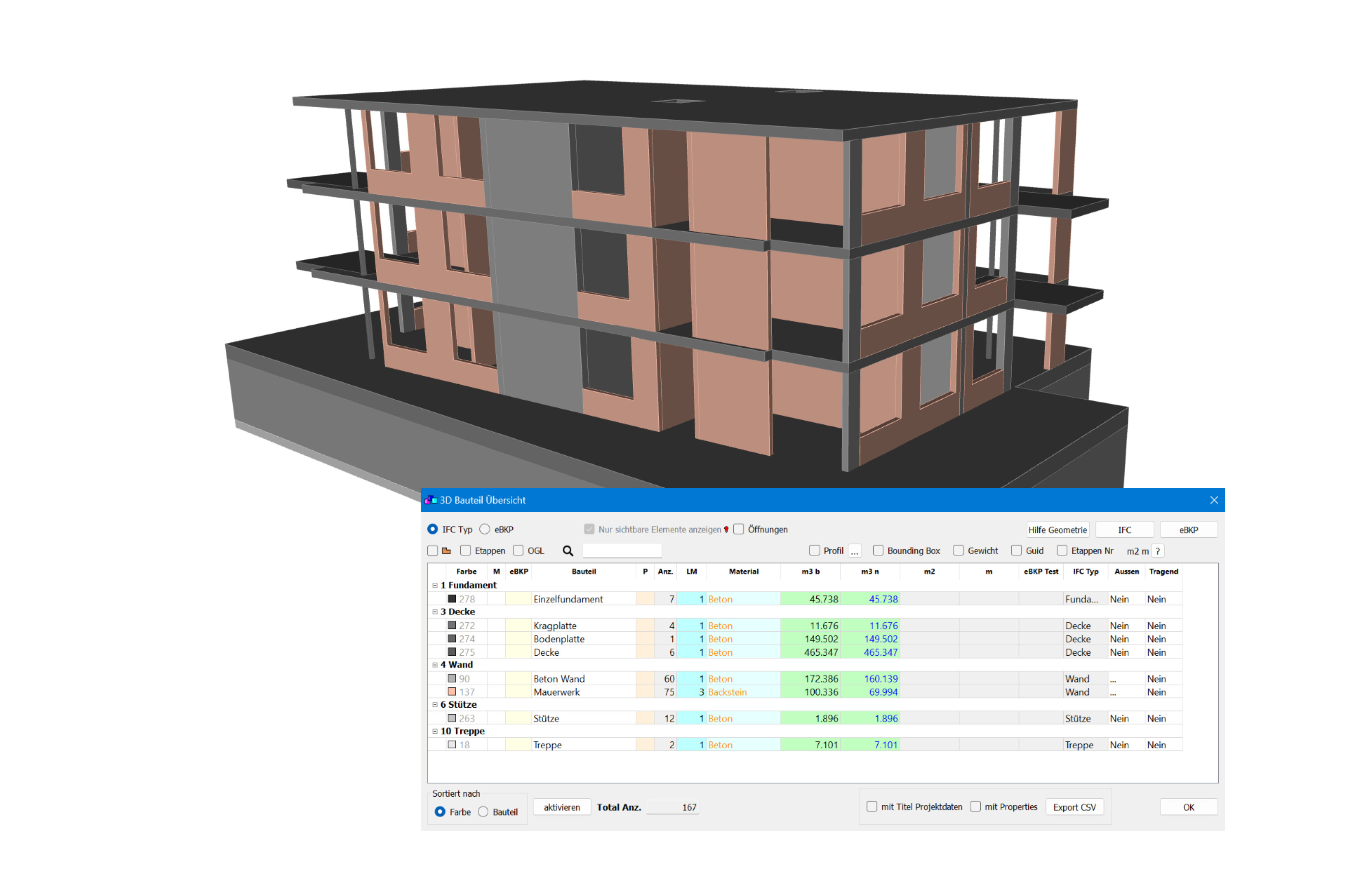 If an IFC model has been imported, there are various clean-up functions to ensure that the quantities determined are also correct.