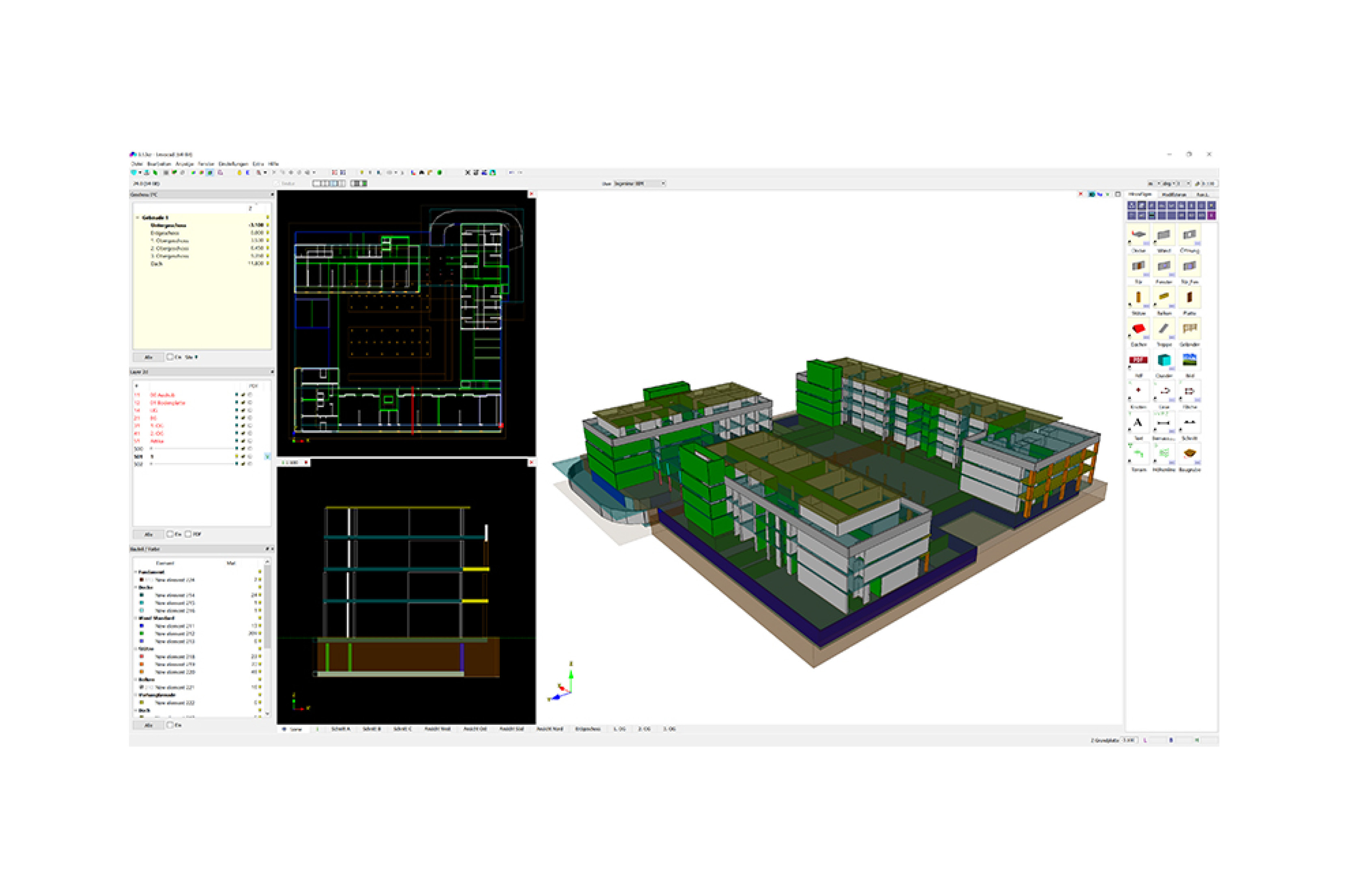 Lexocad can be used to model buildings. PDF plans can be imported to create, for example, a building in 3D quickly and easily with Lexocad's modeling features.